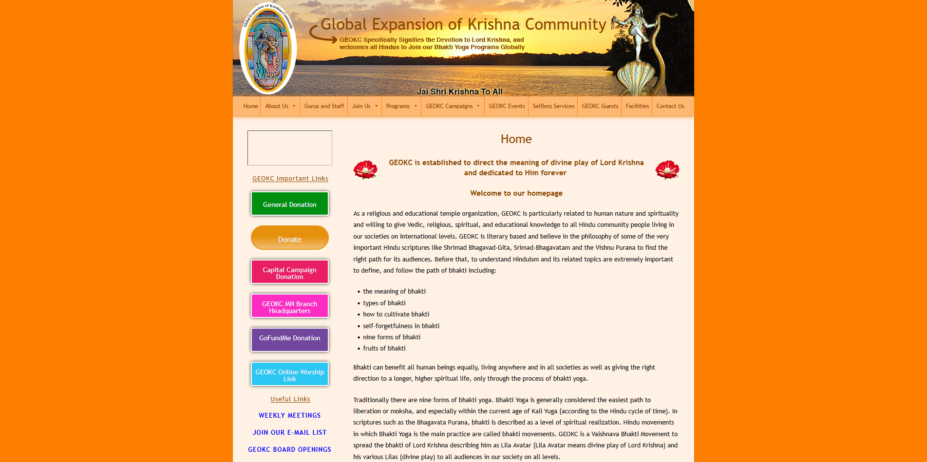 Global Expansion of Krishna Community (GEOKC) is a religious non-profit temple organization.